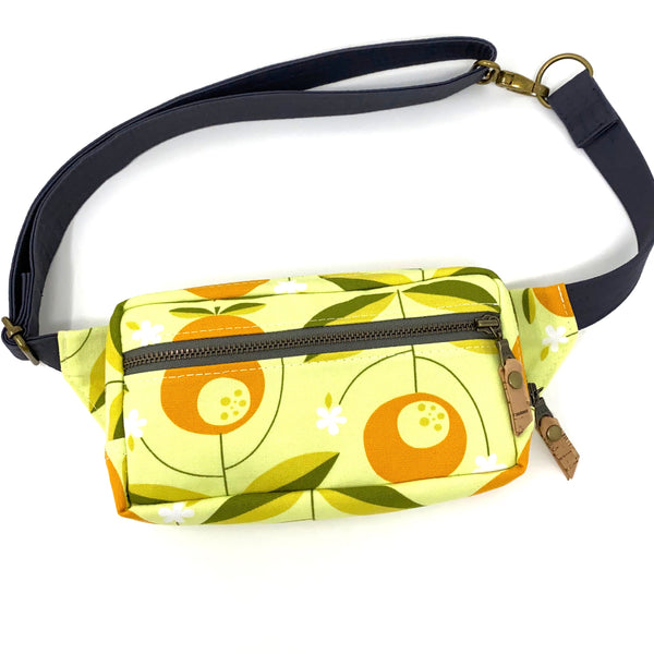 Not your mom's fanny pack! This small, slim pack is the cutest way to carry the essentials for a stroll around town, a walk with the dog, running errands, or a dash through the airport! Made with organic cotton canvas and a coordinating organic cotton lining. Wear on your hip or as a sling (like the cool kids).